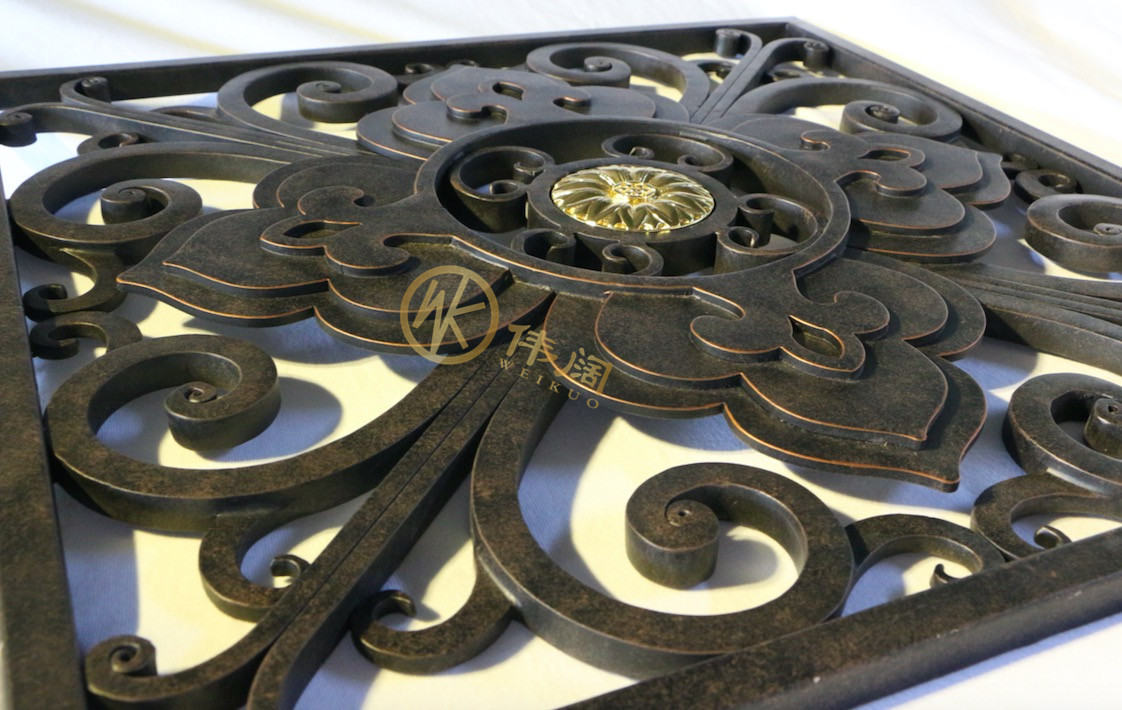 四、油漆:鐵藝產品的表面可做出多種效果,如古銅色、邊角描金等,油漆過程中需做到細致、耐心。